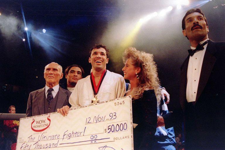 In the 1990s, Grandmaster Helio's son, Rorion Gracie, teamed with Art Davie to start the first inter-discipline combat sport they named The Ultimate Fighting Championship. Rorion's brother, Royce (aged 27), would agree to compete in the first UFC as an ambassador for BJJ. Royce would win 11 fights in a row by finishing every competitor of different disciplines and winning 4 consecutive UFC tournaments until rematching Ken Shamrock at UFC 5 and going to a draw after 36 minutes of fighting without any breaks.