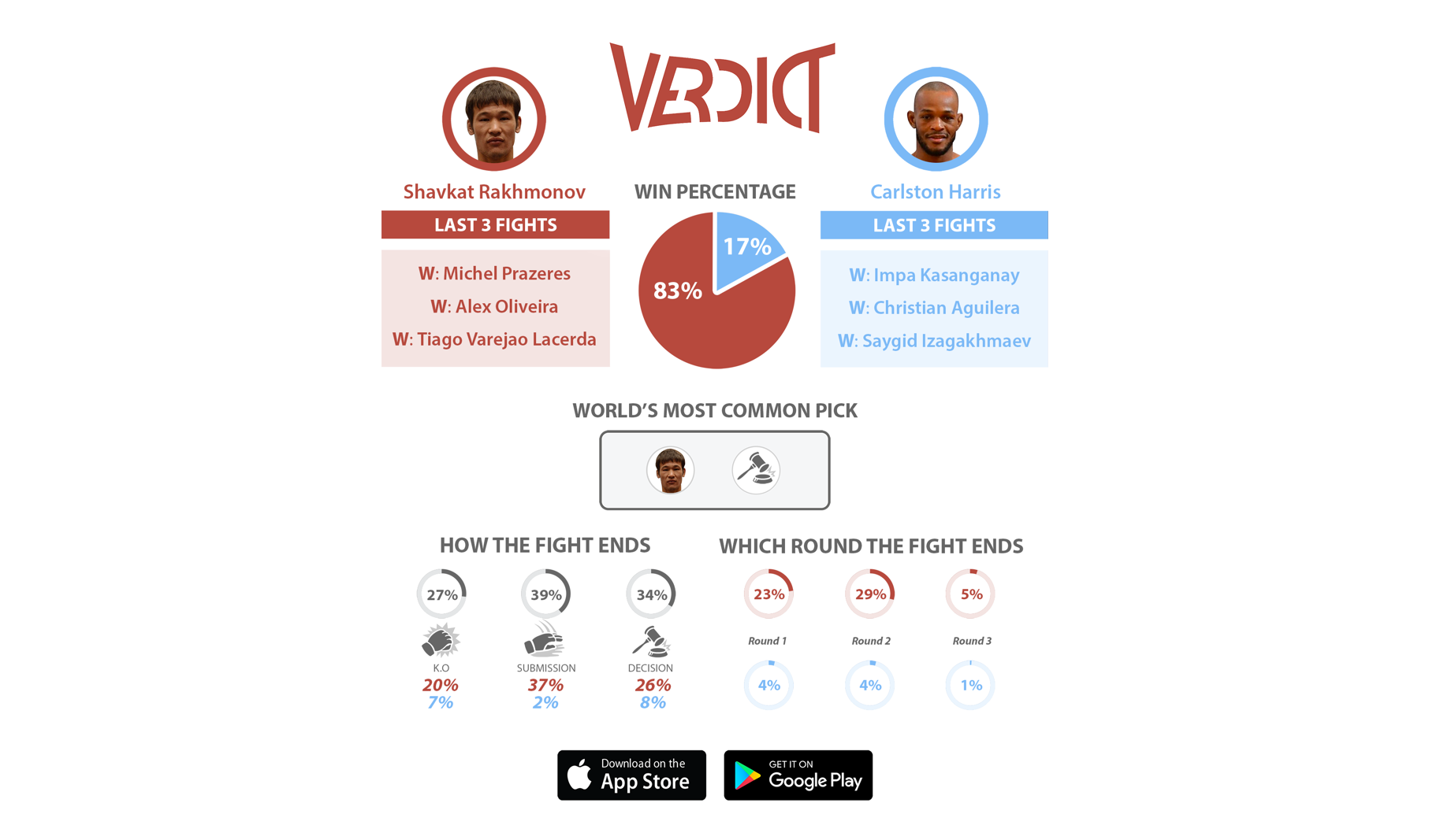 This card features the UFC return of Shavkat Rakhmanov who’s one of the most promising prospects in mixed martial arts. Rakhmanov is undefeated at 14-0 and has finished every opponent he’s fought. Of those 14 wins, 7 have come by knockout and 7 have come by submission. This will be a big test for Rakhmanov who will take on Carlston Harris who’s on a 5 fight winning streak. Harris has finished all 5 opponents during this streak, 4 of them coming in the 1st round. This is one of the most interesting fights on this card and is not being talked about enough.