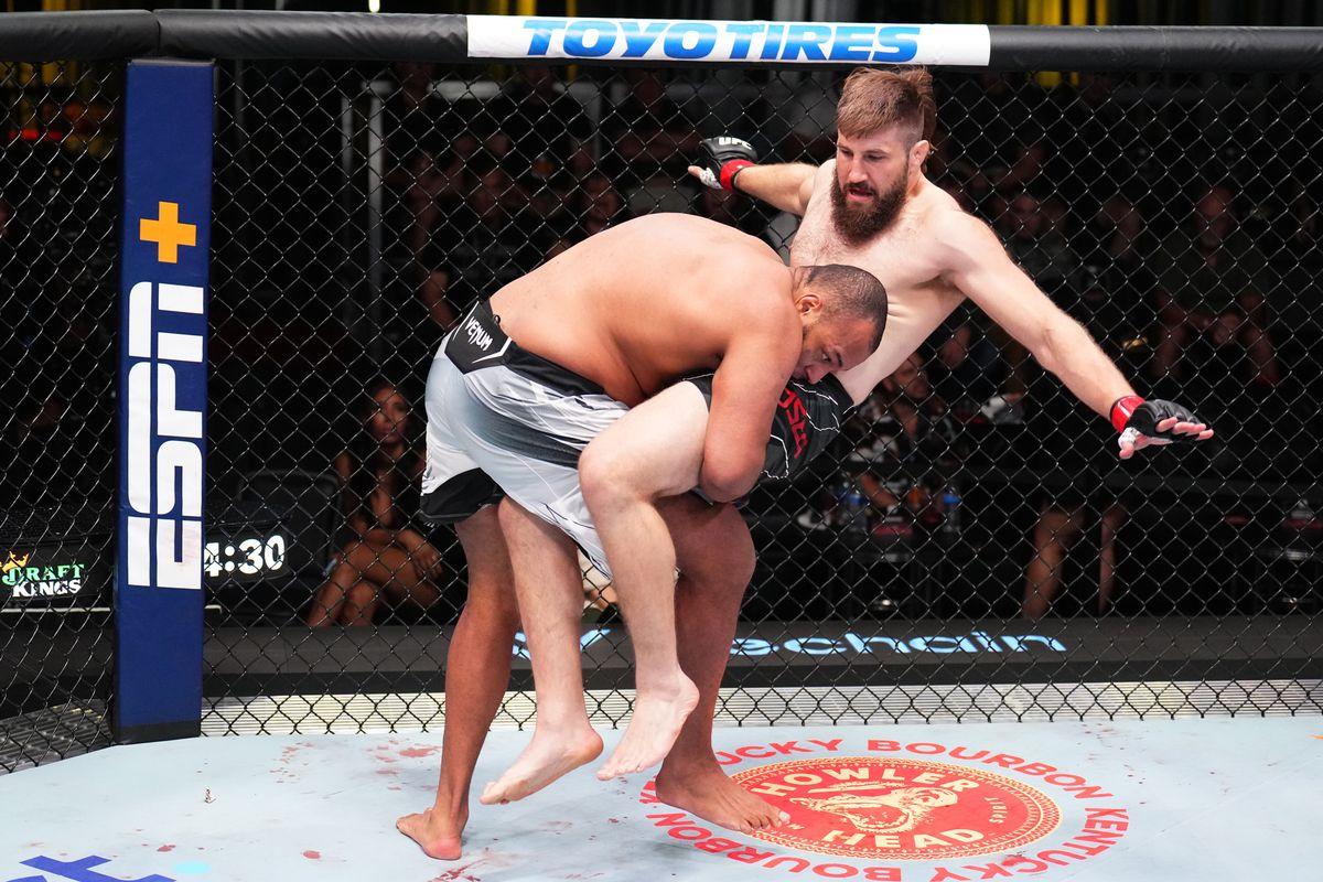 Mayes has won three of his last five fights with one no-contest and has UFC victories over former UFC Heavyweight champion Andrei Arlovski (34-22-0), Josh Parisian (15-7-0), and Roque Martinez (16-9-2). Training at Jackson-Wink MMA, he’s a heavy-handed striker who looks to counter-strike and throws every shot with knockout intentions. He tends to blitz forward and unload combinations before returning to range and firing off kicks. Mayes has solid control and striking in the clinch, able to land significant damage without much space. He occasionally throws flashier attacks, like jumping kicks or Superman punches, which is a sign he’s comfortable with the striking exchanges. Although he won’t usually initiate grappling exchanges, he has shown a tendency to panic wrestle and can do severe damage if he finds himself in top position. Mayes has one-shot knockout power and is willing to brawl in the pocket, but with all his finish losses coming in round 2 or later, his cardio has let him down in the past.