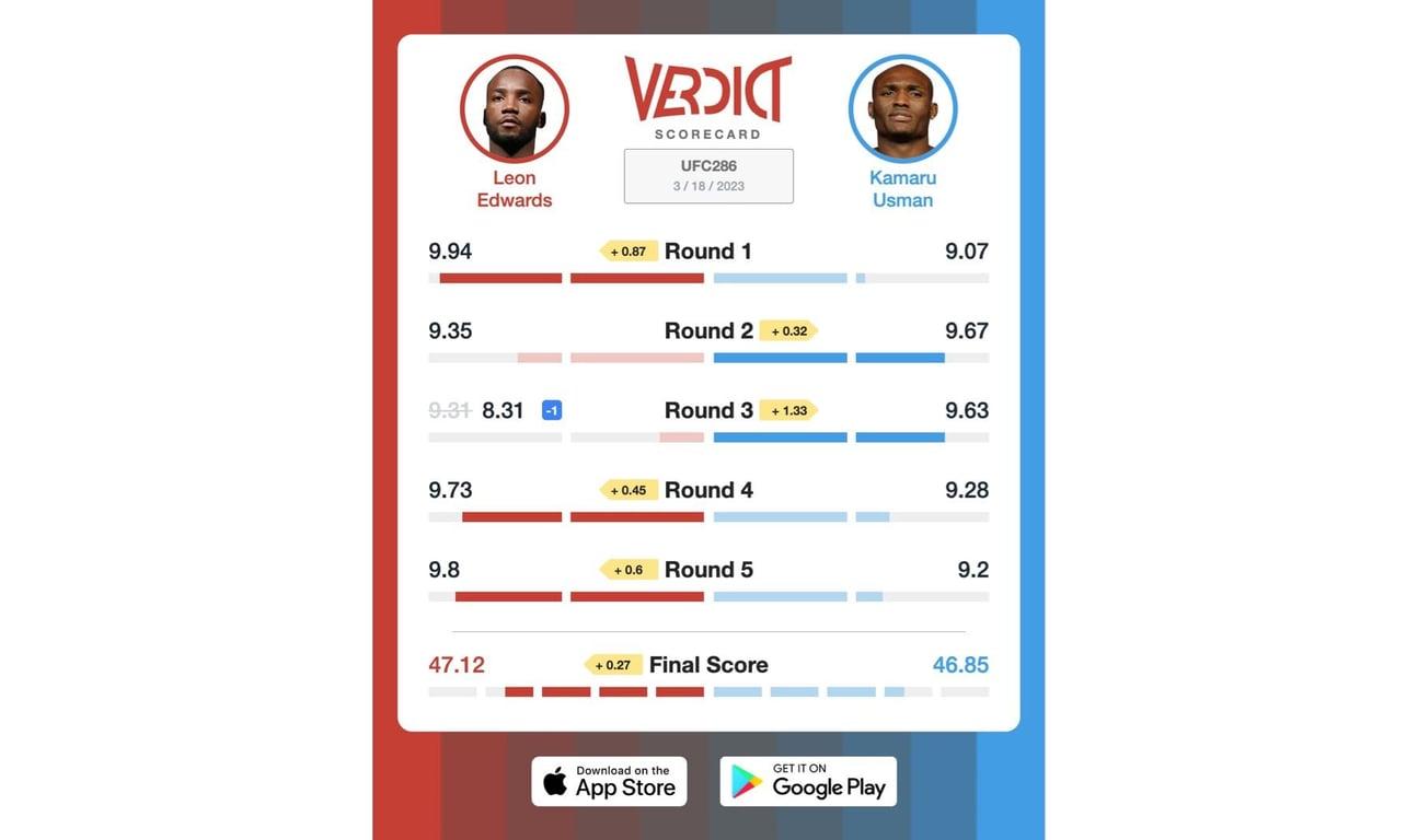 The Verdict Scorecard: 9.67-9.35 Usman.