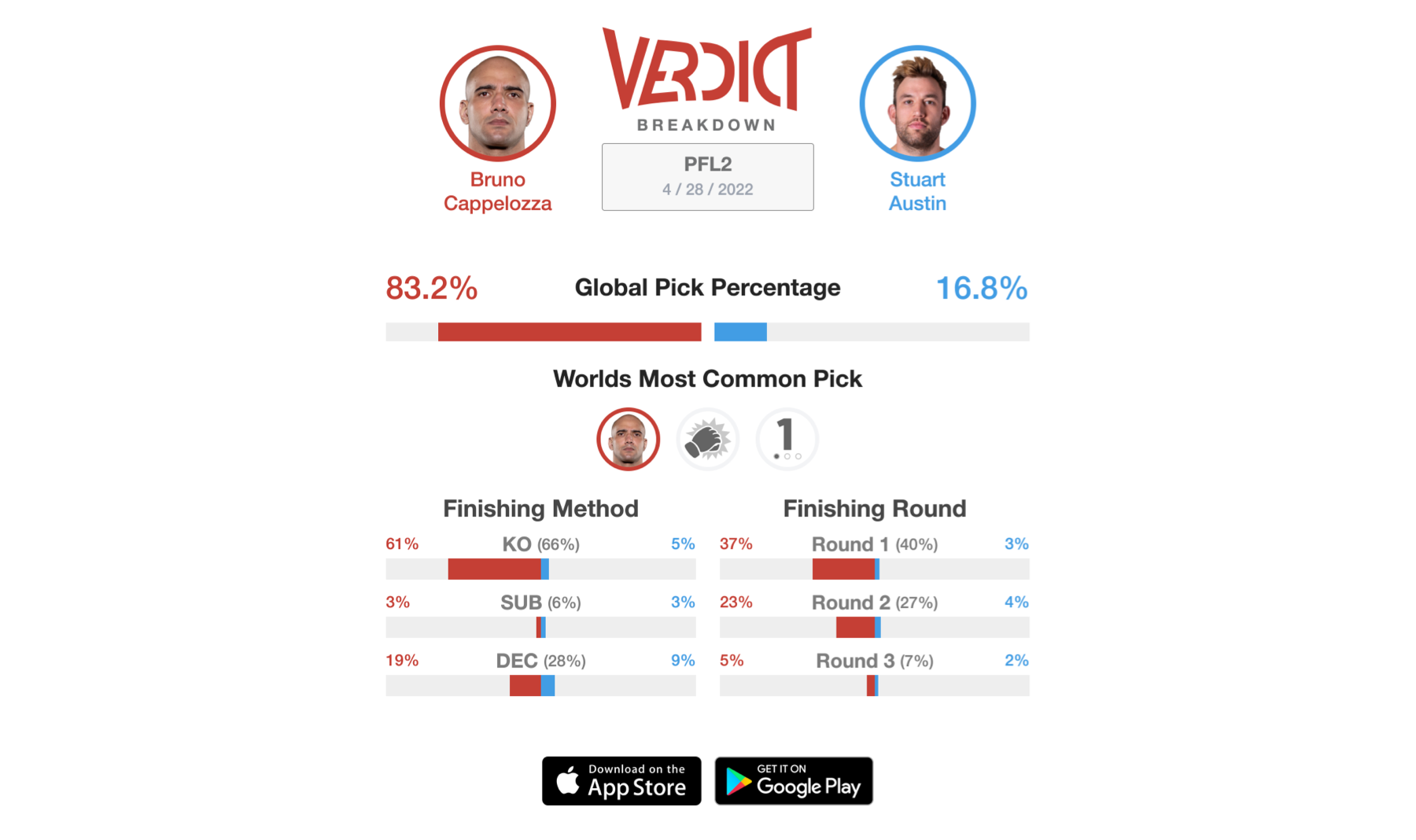 In July of 2018, Bruno Cappelozza fought current UFC Light Heavyweight title contender Jiri Prochazka. After losing to Prochazka, Cappelozza had a 3 year absence away from the sport and it seemed like he wouldn’t be returning. It was in early 2021 when Cappelozza was offered a contract from the PFL to compete in their 2021 Season as a Heavyweight. Cappelozza signed the contract and made the most of it as he went on to win the PFL Championship and $1 Million. He went through a rollercoaster of emotions the night he won the Championship. After he had his hand raised, his corner informed him that his father had died. His team didn’t want to let him know of his father’s passing because they didn’t want him to be distracted heading into the biggest fight of his life. Cappelozza returns to the PFL this Thursday and will once again try to earn a Championship and $1 Million. He’s a big favorite on Verdict, with 82.3% of the community predicting him to defeat Stuart Austin in his season opener.