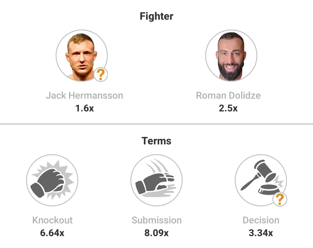 Hermansson is as solid as they come in all facets of the game. I thoroughly expect this fight to play a bit similar to the Curtis fight. He will be a bit better than Dolidze everywhere and if he could just avoid getting knocked out he should cruise to a unanimous decision victory and that's who I'm rolling with.