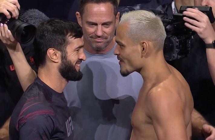 The fight began with a close back-and-forth striking battle that saw Brenner launch in with aggressive power attacks while Tukhugov countered with repeated left hooks. Tukhugov landed with more regularity which gave him the round, although he was cut early, giving a bad visual.