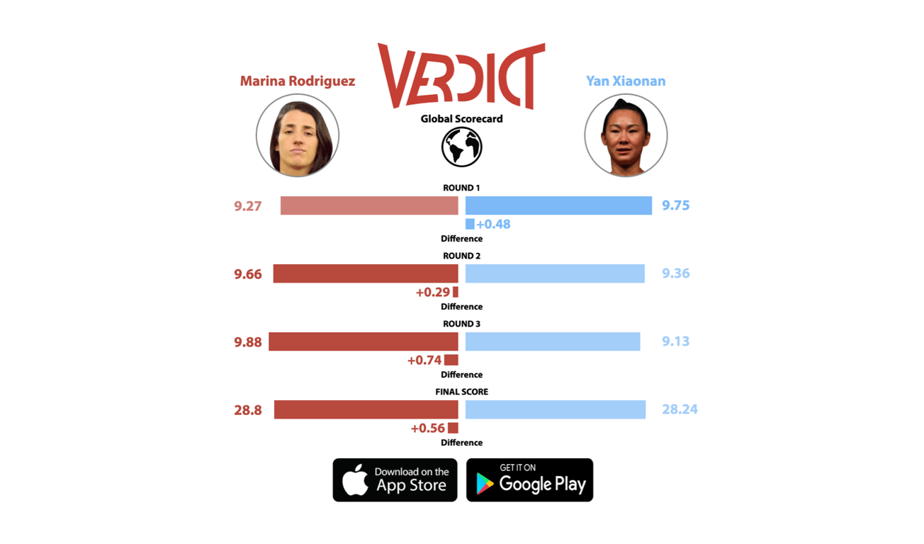 In the eyes of many, the fight between Marina Rodriguez and Yan Xiaonan should have earned fight of the night honors. Every round was competitive and the data was close on the Global Scorecard. The official ruling was a split decision win for Rodriguez. The Global Scorecard tells the story of the fight as the momentum started to from Xianon towards Rodriguez as the fight progressed. Rodriguez has now won 4 consecutive fights against some of the best fighters in her division. This fight might have earned her a title shot.