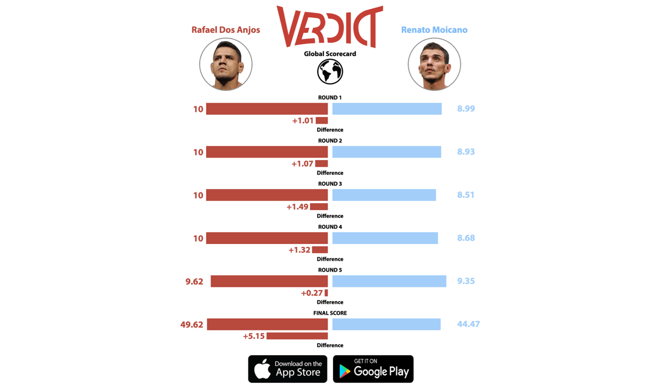 Official Result- Rafael dos Anjos by unanimous decision (49–45, 49–44, 50–44)