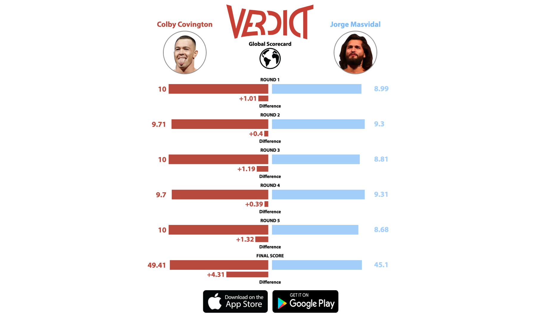 Official Result- Colby Covington by unanimous decision (49-46, 50–44, 50–45)