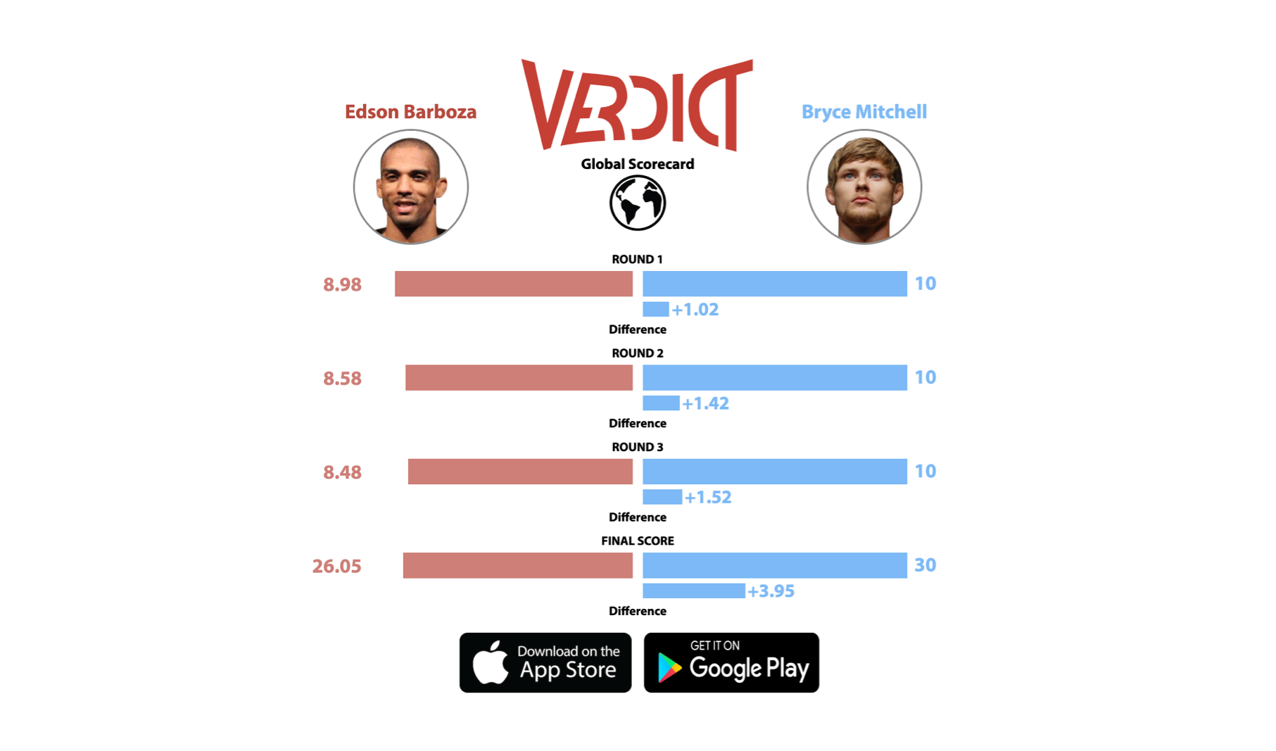 Official Result- Bryce Mitchell by unanimous decision (30–25, 30–26, 30–27)