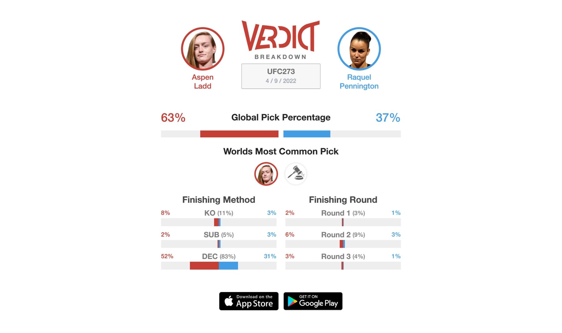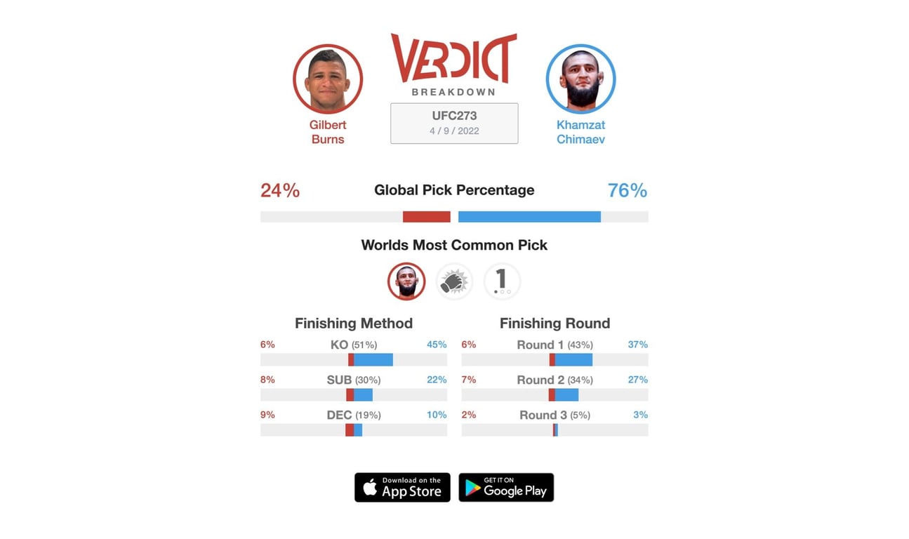 Even with 2 Championship bouts on the card, Gilbert Burns vs. Khamzat Chimaev is still the most anticipated fight on the card for many people. It’s been a long time since a prospect has demolished the competition the way Khamzat Chimaev has. He’s only had 4 fights in the UFC and many are already expecting him to become a UFC Champion in multiple divisions. Given that he’s ranked #11 at Welterweight, not many at the top of the division were keen on fighting Khamzat Chimaev. They view this as a high risk and low reward situation. However, Gilbert Burns knows that if he defeats Khamzat, he’s going to take all of his hype regardless of his ranking. Burns has never shied away from a challenge and you can see that in his fighting style. He’s a multiple-time Brazilian Jiu-Jitsu World Champion a former UFC title challenger. If Khamzat Chimaev defeats Gilbert Burns, there can be no more doubt. Khamzat will prove that he’s the real deal. The majority of the Verdict Community already believes Khamzat is the real deal, as 76% are predicting him to defeat Burns.