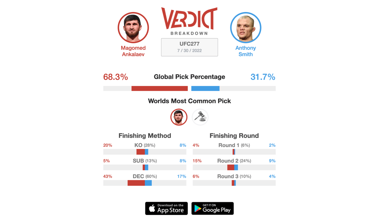 A fight that has title implications on the line, Magomed Ankalaev and Anthony Smith will battle it out to become next in line for a title shot at the Light Heavyweight division. This fight opens up the main card and is important as all the other fights on this main card. Ankalaev has been talked about as the next champion of the division. The high praise for Ankalaev has been justified because he has been great in the UFC. With a professional record of 17-1, Ankalaev is riding into this fight winning eight consecutive fights. His most recent win is against Thiago Santos earlier this year via unaminous decision. Ankalaev is more of a balanced fighter yet he leans on his striking for the majority of the fight. He's great at not absorbing too much damage on the feet and keeps his distance. In opposition, Smith has been on a tear of his own. The former title challenger is on a three-fight winning streak with all wins finishing in the first round. In this span, Smith defeated Devin Clark, Jimmy Crute, and Ryan Spann. Smith has a professional record of 36-16 and has a 95% finish rate. Smith always looks to end the fight early and in a domiant way. Smith has looked great with his jab in his last few fights. If the fight were to go to the ground, Smith has an open guard and can submit anyone from the bottom. Ankalaev also does well on the ground as both fighters are balanced in every style of fighting. The winner of this fight can well be the next one in line to challenge for the belt as both fighters deserve that spot. Where it stands now, 68.3% of the Verdict Community are taking the side of Magomed Ankalaev to defeat Anthony Smith at UFC 277.