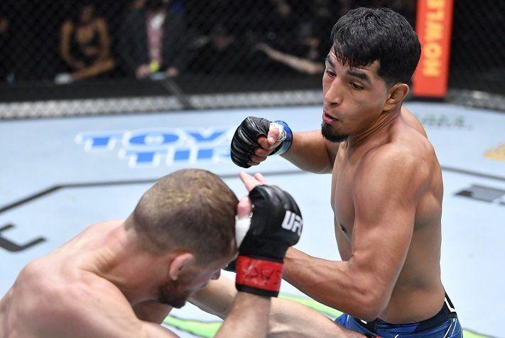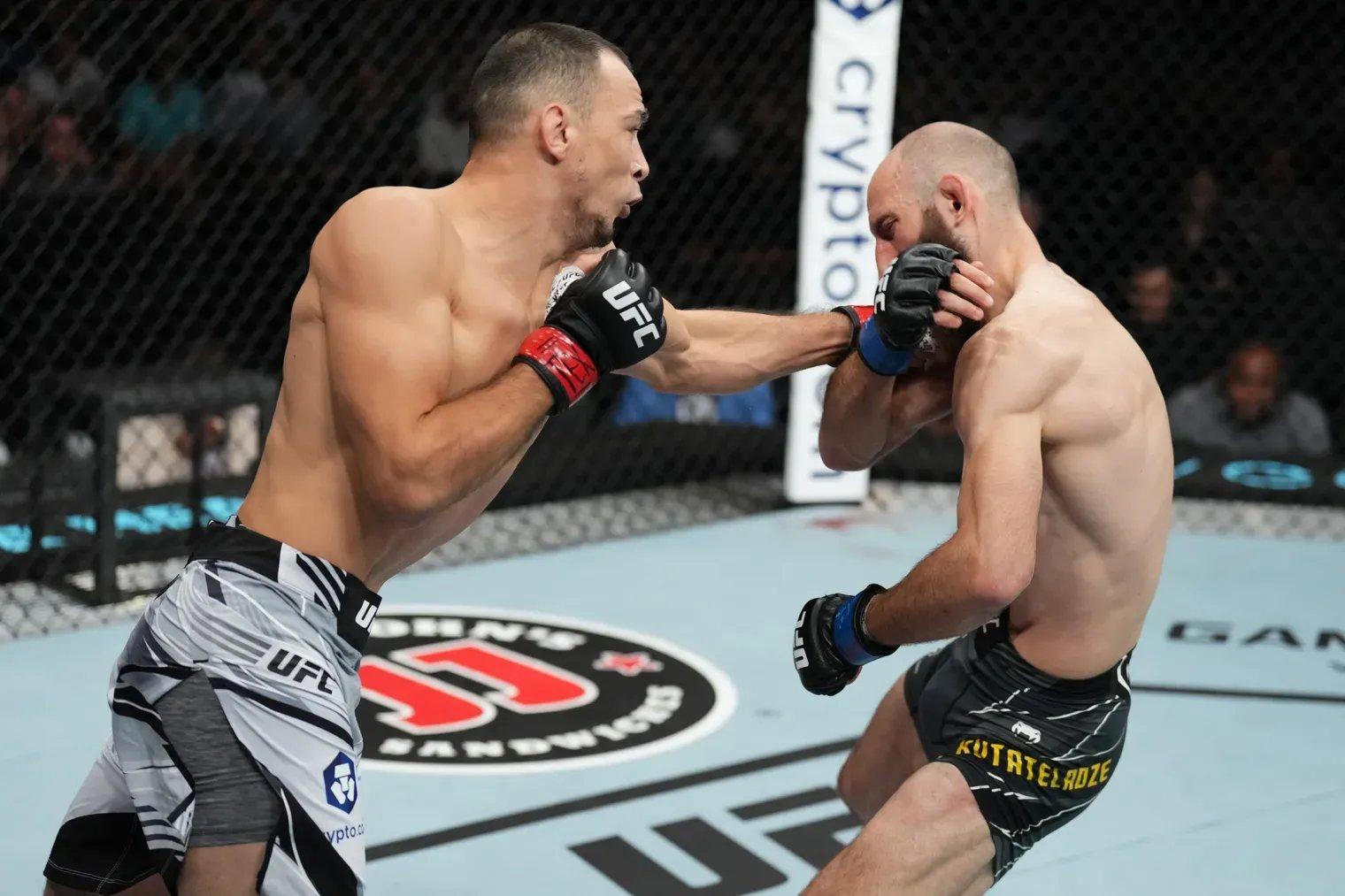 In what was arguably the most competitive fight of the night, Damir Ismagulov showed off why he is such a hot prospect right now. Both fighters came out in the orthodox stance looking to make reads on their opponent and feint their way into landing something significant. Most of the grappling exchanges were neutralized by the other man and the fight was to be decided on the feet. Ismagulov made sure to utilize his jab to disrupt the rhythm and mark up the face of Kutateladze. Guram showcased his highly regarded Muay Thai skills by throwing a variety of combos that typically ended with a low kick. All in all, both fighters made strong accounts of themselves despite their having to be a winner and a loser. The biggest talking points of the fight will likely be the grounded knee that Kutateladze appeared to land on the chin of Ismagulov late in the 3rd round that caused a halt in the action, as well as the bizarre 28-28 scorecard that was tallied incorrectly.