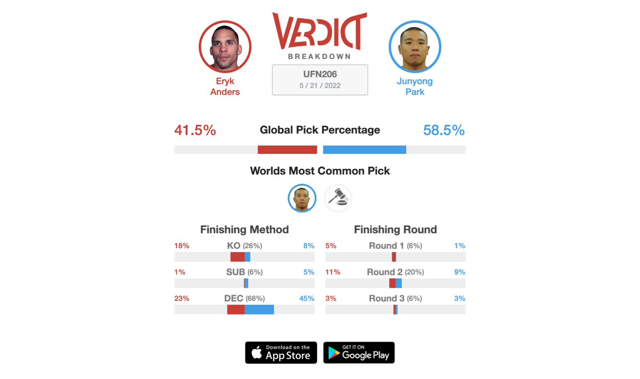 The Verdict Community is slightly on the side of Jun Yong Park, with 58% predicting he will win the bout with 68% also expecting this fight will go the distance, with 45% of those giving Park the nod.