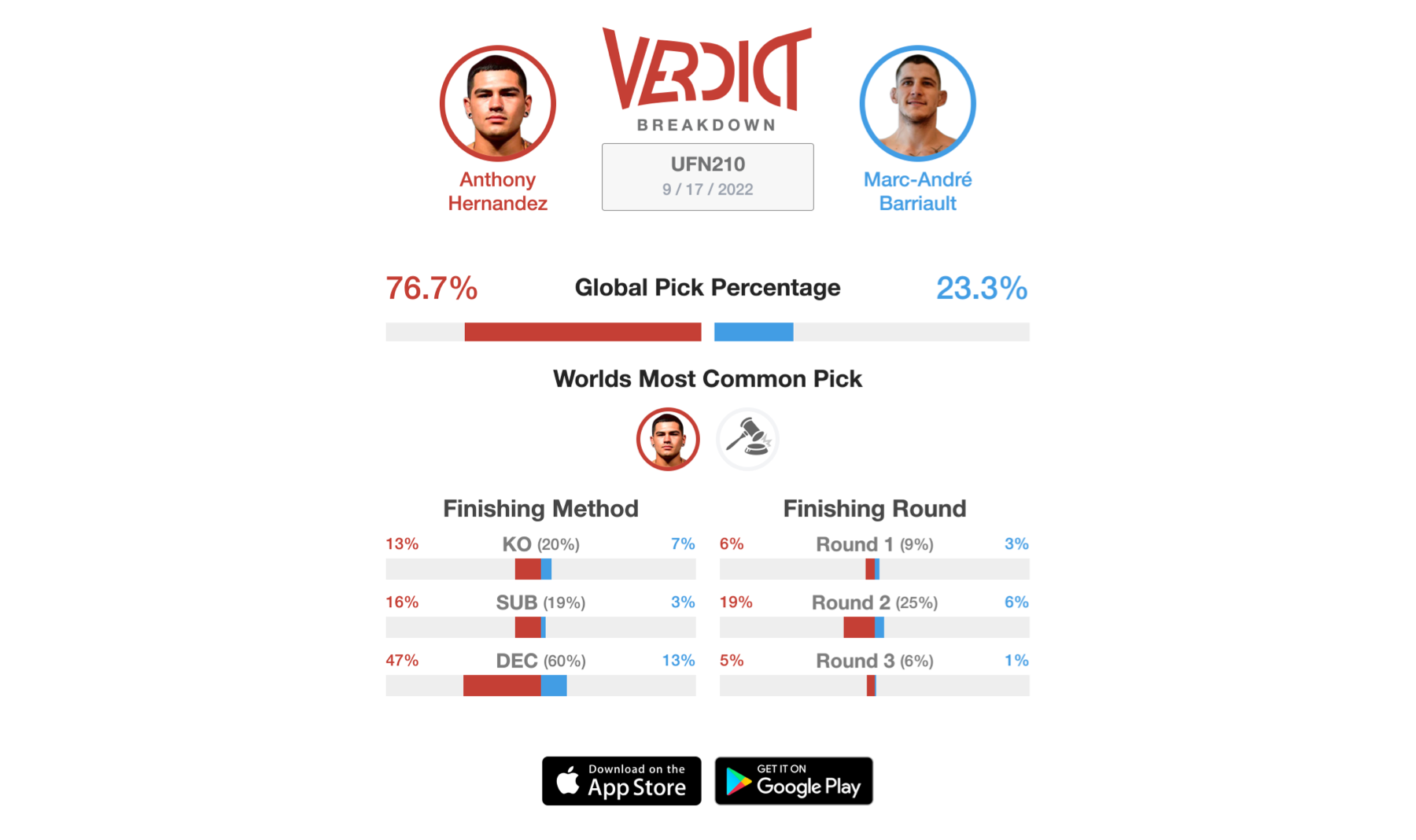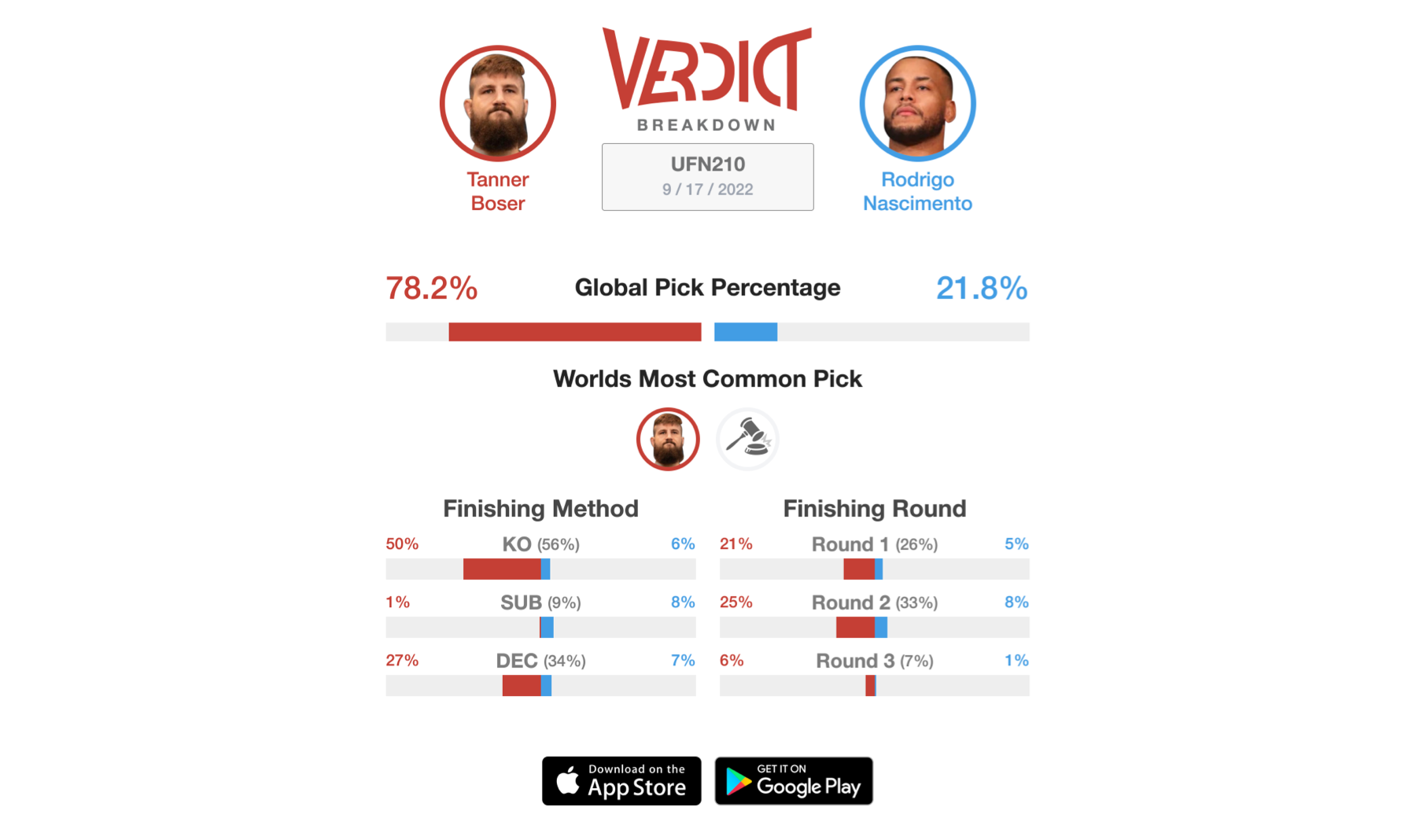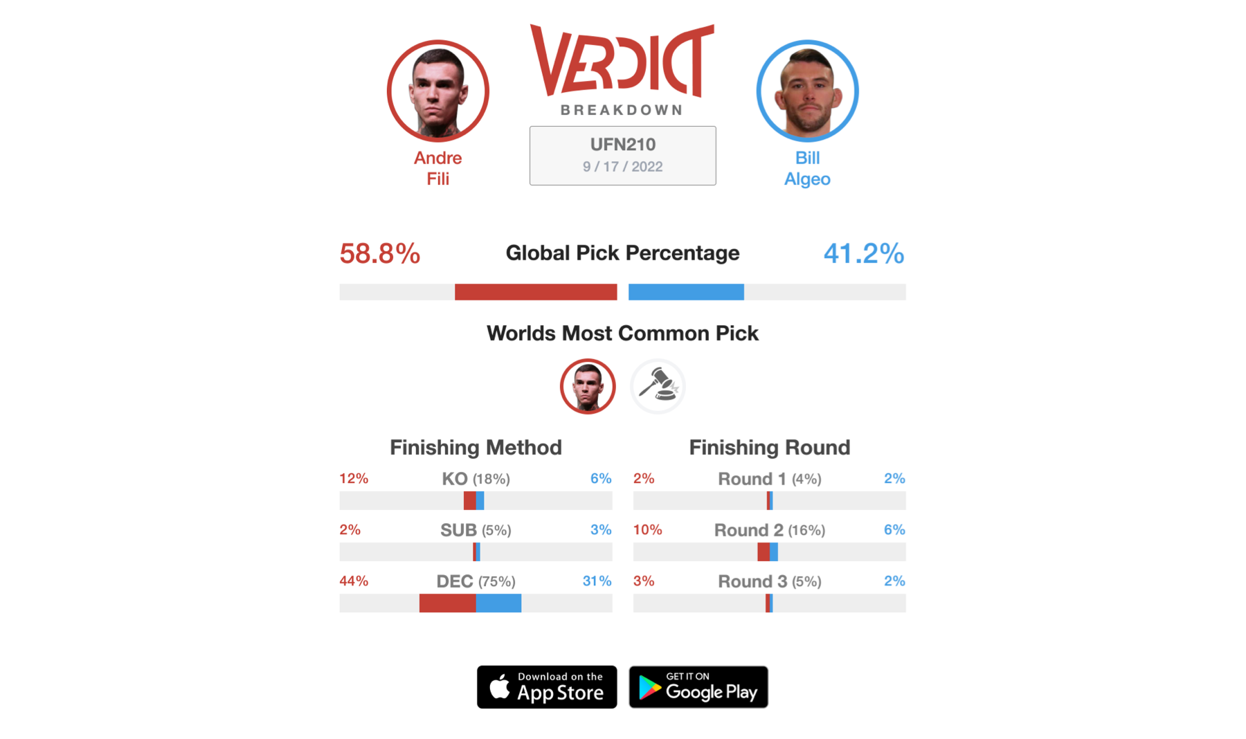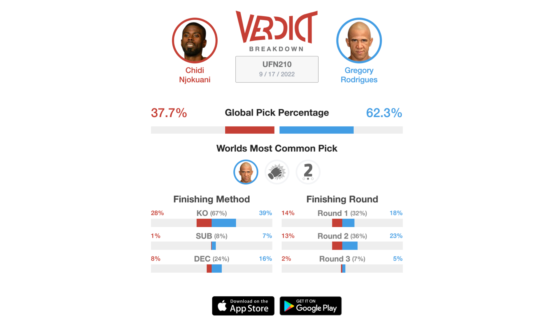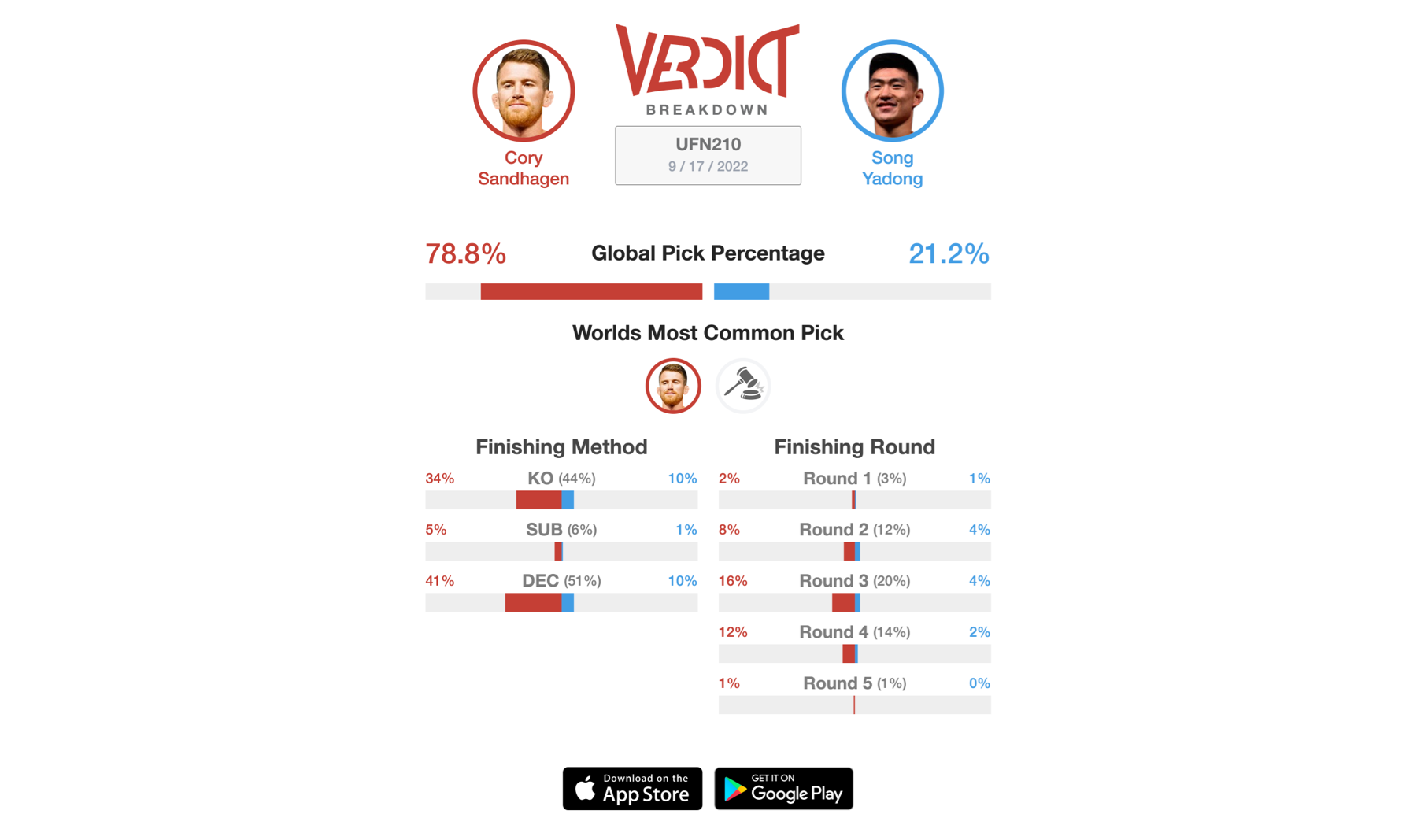 After a chaotic pay-per-view week, the UFC settles down back at the APEX for what should be an excellent card on paper. Cory Sandhagen will be the one to give the highly touted Chinese prospect Song Yadong a crack at the top five in an excellent Bantamweight main event. The co-main event will be guaranteed fireworks as two power punchers Chidi Njokuani and Gregory Rodrigues will look to continue their winning ways in what looks like a guaranteed finish. Let’s take a look at the card and how it shows on Verdict.