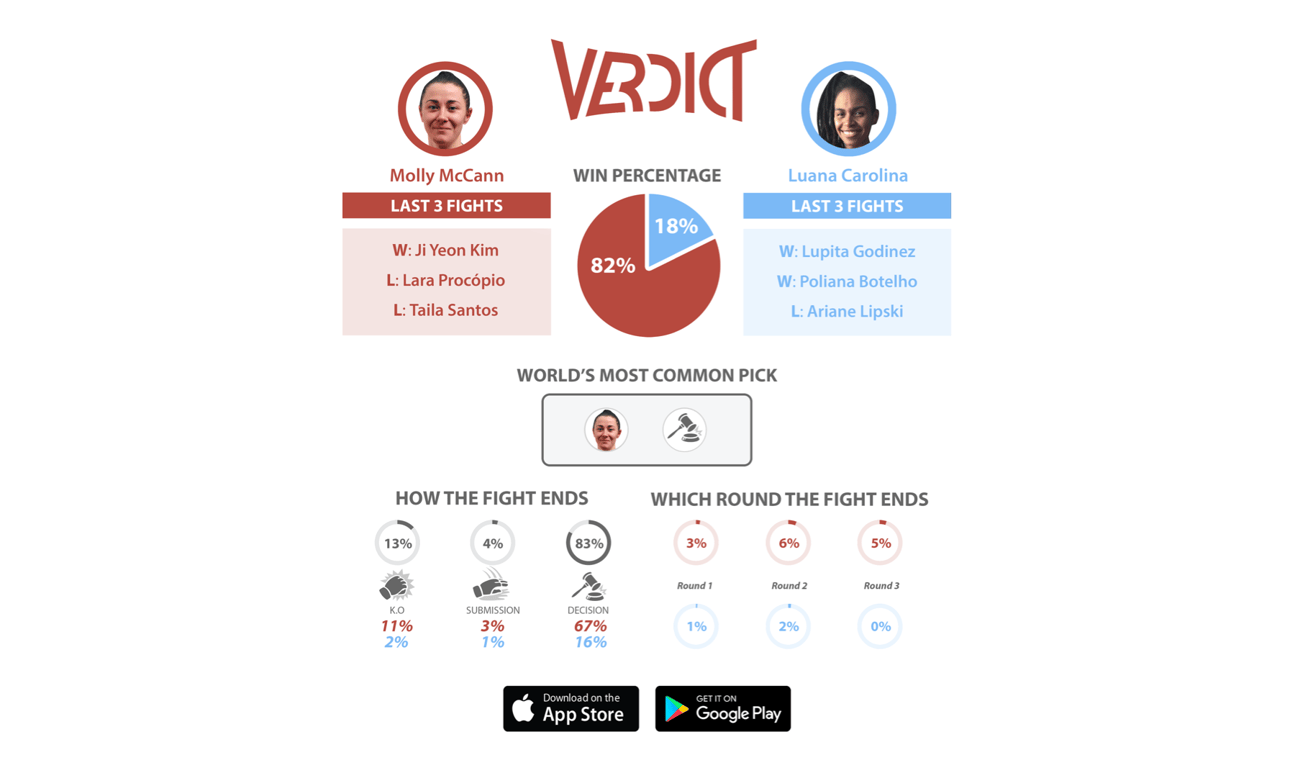 Liverpool’s Molly McCann will compete in her home country this weekend when she takes on Luana Carolina. McCann is a former Cage Warriors Flyweight Champion and is hoping to replicate this accomplishment in the UFC. She’ll be taking on Luana Carolina who’s coming off back to back wins in the UFC. McCann’s last 6 fights have gone to a decision and 83% are predicting her fight against Carolina to go to the scorecards.