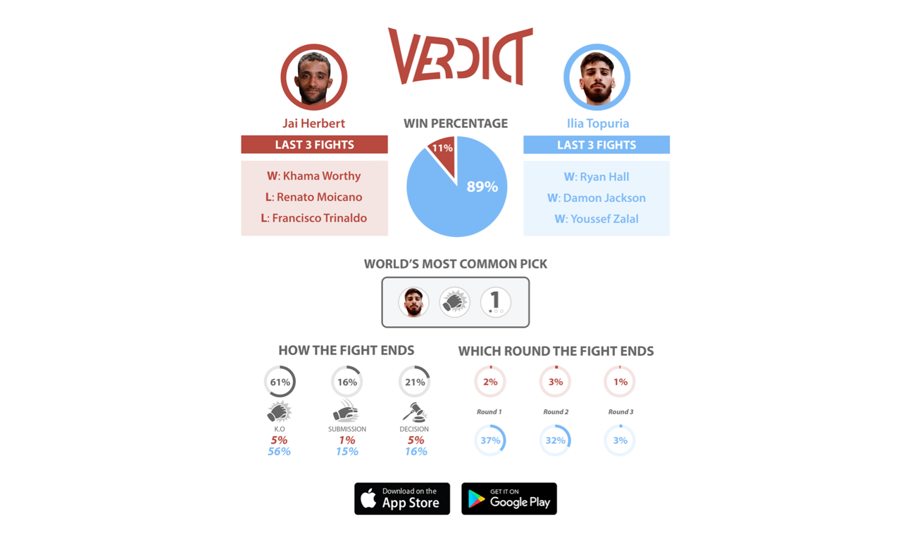 This UFC London main card will kick off with a Lightweight fight between Jai Herbert and the undefeated Ilia Topuria. In his last fight, Topuria became the first fighter in history to finish Ryan Hall by knockout. Topuria is well rounded and can finish a fight in a variety of ways as he has a 90% finishing rate. Topuria is a massive favorite, with 90% of the Verdict Community predicting him to win. On the Tuesday of fight week, Topuria and Paddy Pimblett got into an altercation. If they both win their fights this weekend, they could be matched up against each other next.