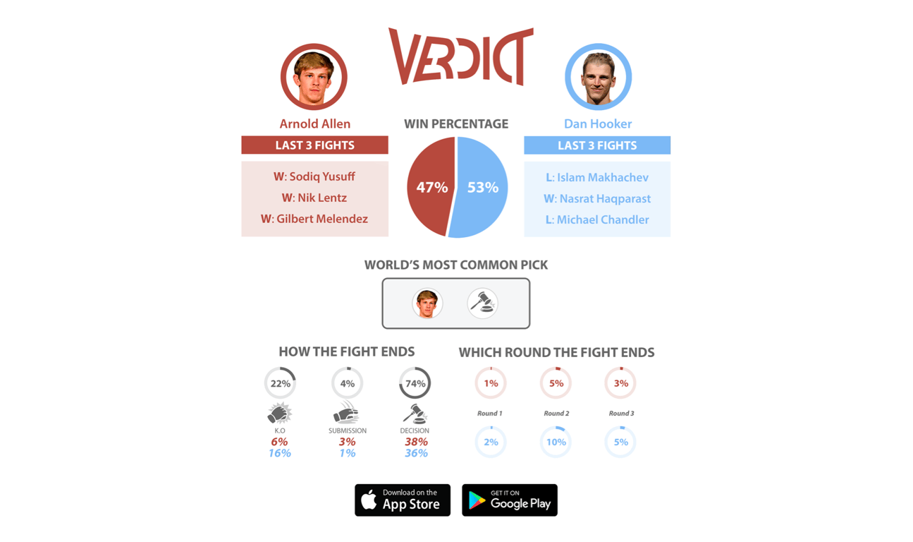 Makhwan Amirkhani is in a must-win situation this weekend, as he’s in danger of losing his 4th consecutive fight against Mike Grundy. Grundy finds himself in a similar position, as he’s lost 2 consecutive fights headed into UFC London. The Verdict Community is split on who they think will win the fight, as the fight is currently dead even at a 50/50.