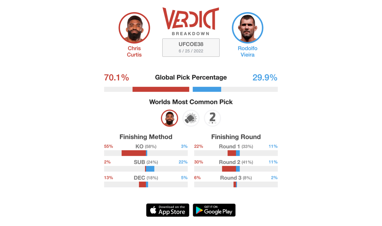 The Verdict Community is predicting a first or second-round KO for "The Action Man" Chris Curtis, however, make sure you tune into this one as it is almost guaranteed to not go the full 15 minutes.