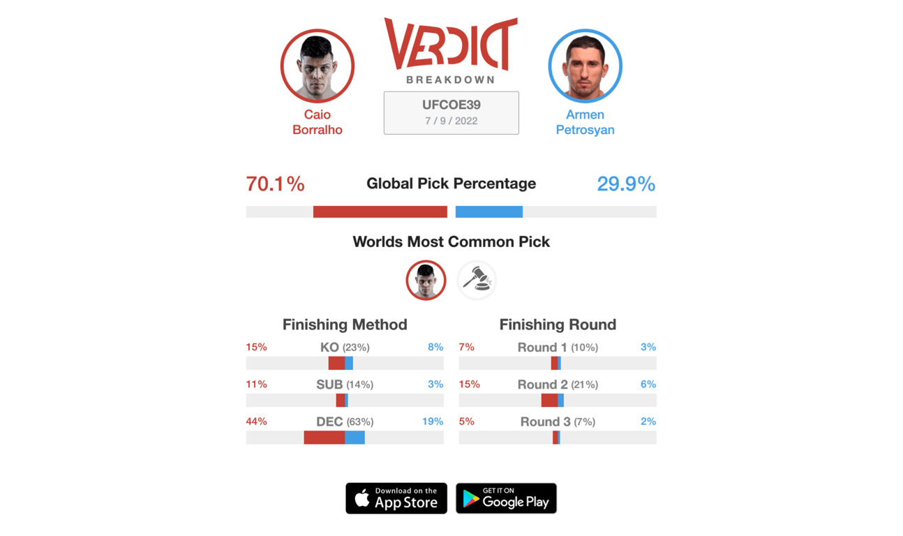 One of the most interesting fights resides in the co-main event when rising prospect Caio Borralho takes on Armen Petrosyan. With a professional record of 7-1, Petrosyan is seeking his second straight win in the UFC. He earned a contract on the Dana White Contender Series (DWCS) when he defeated his opponent in the first round via knockout in October of 2021. A few months later, Petrosyan made his UFC debut against Gregory Rodrigues where he would go to the judges scorecards for the first time in his career. Petrosyan got his hand raised via split decision. On the flip side, Borralho is coming off a similar path as well. Earning his contract through the DWCS as well, Borralho made his UFC debut a few months ago when he defeated Gadzhi Omargadzhiev via technical decision. It was an illegal strike from Borralho in the third round to make it a technical decision. Nonetheless, Borralho looked very good in his debut. With a professional record of 11-1-0 (1 NC), Borralho is coming into this contest winning eight consecutive. The fans will enjoy this one for as long as it lasts as both men will try to finish the fight early. As of now, 70% of the Verdict Communtiy has Borralho defeating Petrosyan at UFC Vegas 58.