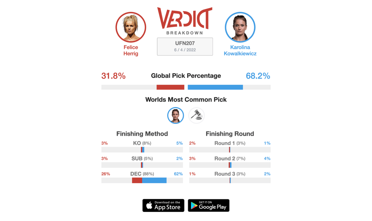 Felice Herrig and Karolina Kowalkiewicz will face each other once again as both women desperately need a win to get back on track. The two met back at UFC 223 when Kowalkiewicz won via split decision. Since then, Herrig has been on a three-fight skid, with her last win being back in 2017 against Cortney Casey. On the flip side, Kowalkiewicz is on a five-fight skid, losing to the likes of Jessica Andrade, Michelle Waterson, Alexa Grasso, and other top contenders. The last win Kowalkiewicz earned was against Herrig and will try to do the same once again. As of now, over 68% of the Verdict Community are predicting Kowalkiewicz to win the rematch over Herrig as the most common pick is by decision.